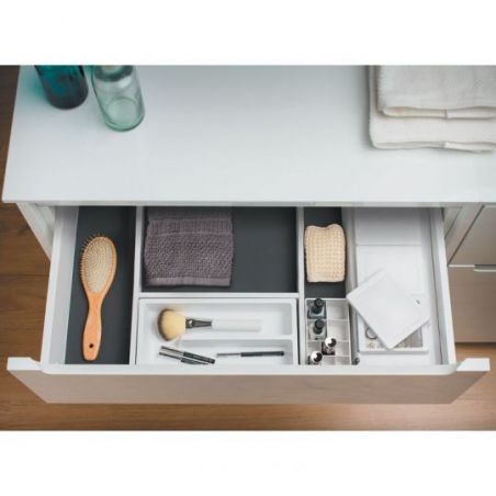 Organisateur de tiroir pour meuble de salle de bains - PVC blanc - 3 boîtes de rangement - L.288/378mm-p.372mm-H.69mm