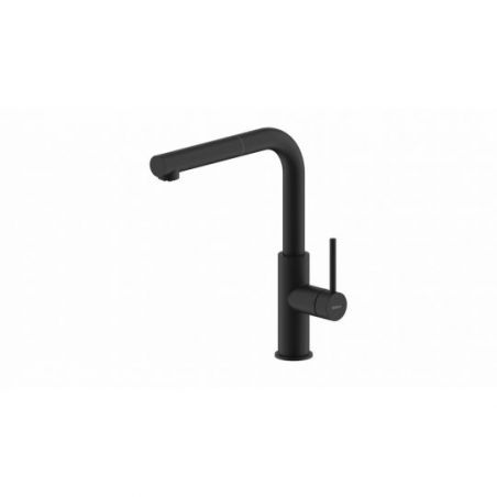Mitigeur à bec unique. À tête pivotante/extractible, manette latérale et cartouche céramique.