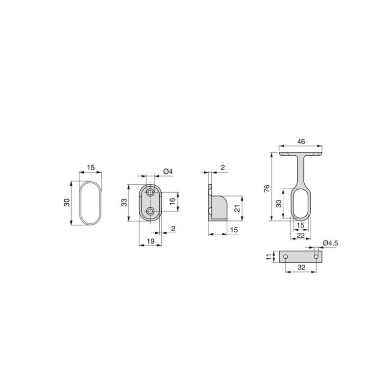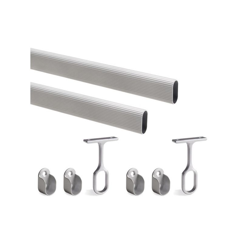 Le kit contient deux tubes de penderie 30x15 mm pour armoire, fabriquées en aluminium, et les supports latéraux pour son installation.