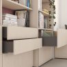 Les côtés métalliques sont en acier avec finition peinte gris anthracite, permettent de régler la façade du tiroir ± 2 mm verticalement et ± 1 mm horizontalement. Les guides sont à sortie totale avec fermeture amortie et permettent une charge maximale de 40 Kg pour le tiroir.