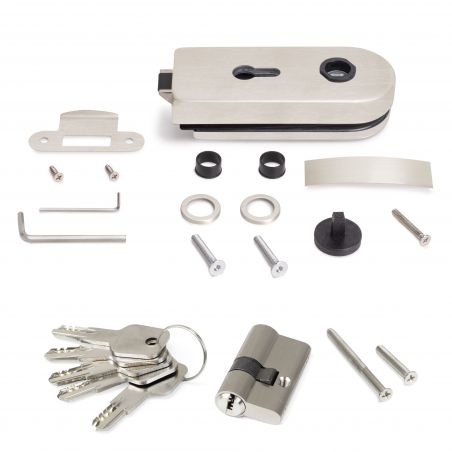 Serrure pour porte en verre 8-12mm avec cadre en bois, cylindre avec clés, Acier inoxydable