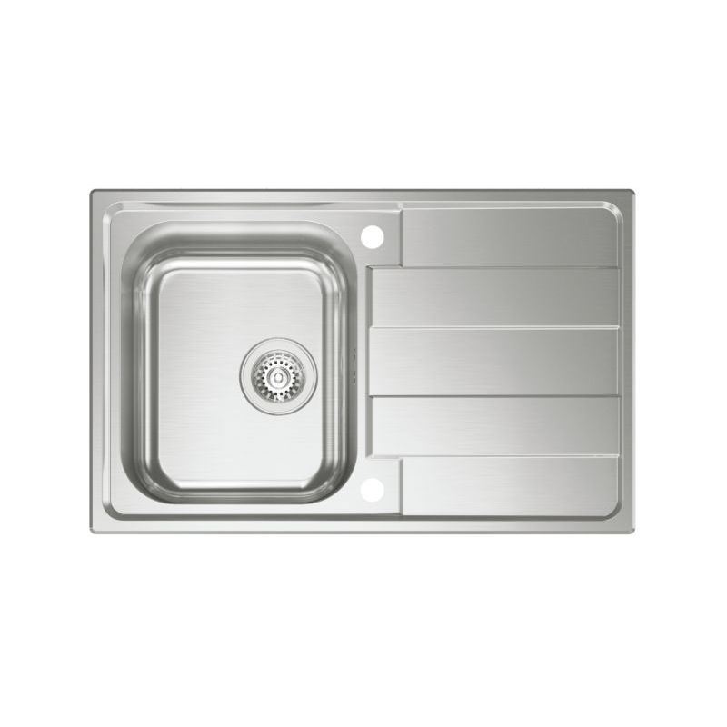 En savoir plus ...Avec son design moderne, l'évier encastré de la série Riva 1 est un complément attrayant pour chaque aménagement de cuisine. Grâce à son aspect discret et contemporain, il s'harmonise avec les concepts d'aménagement les plus divers. Outre une cuve principale dotée d'une vanne à panier-filtre de haute qualité et d'une garniture à excentrique rotatif, l'évier dispose d'un petit égouttoir sur lequel la vaisselle lavée, comme les assiettes ou les tasses, peut être posée. Avec des accessoires optionnels comme une planche à découper, l'évier de cuisine peut également être utilisé pour la préparation des aliments. Grâce à sa fabrication en acier inoxydable de haute qualité, il est particulièrement résistant et durable. Grâce à sa surface hygiénique et facile d'entretien, l'évier se nettoie sans effort. Il est encastré à plat dans le plan de travail, ce qui donne à l'évier un aspect réduit. La forme réversible offre une grande liberté d'orientation : la cuve peut être installée à gauche ou à droite de l'égouttoir.