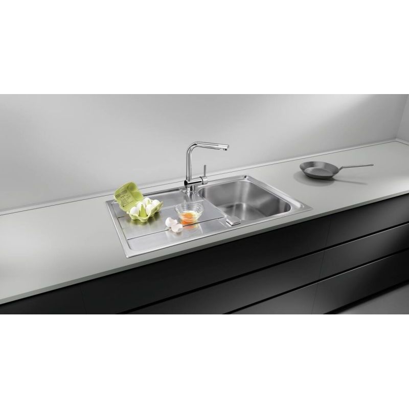 Avec son design moderne et épuré, l'évier encastré de la série Riva 2 est un point fort dans chaque cuisine. Grâce à son design sobre, il s'intègre parfaitement dans l'aménagement existant. Pour que la vaisselle mouillée, les plats et les casseroles puissent sécher facilement, l'évier est équipé d'un égouttoir généreux. L'évier est équipé d'une vanne à panier de haute qualité avec une garniture à excentrique rotatif et permet de faire la vaisselle confortablement. Pour une utilisation de longue durée, l'évier de cuisine est fabriqué en acier inoxydable de haute qualité. Parmi les caractéristiques de ce matériau figurent une grande résistance et une résistance à la chaleur. La surface lisse, hygiénique et facile à entretenir est particulièrement simple à nettoyer. Grâce à son encastrement à plat dans le plan de travail, l'évier présente un aspect réduit attrayant. Grâce à sa forme réversible, il est possible de monter l'évier à gauche ou à droite. L'évier encastrable peut être complété sur demande par des accessoires adaptés, comme la robinetterie haute pression de la série Drive 1.