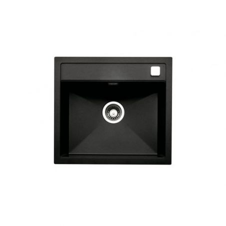 Évier encastrable. Composite, bac individuel. Soupape à tamis 3½" avec robinetterie à excentrique rotatif, chromé. 5 préforages, les forages doivent être percés sur place.