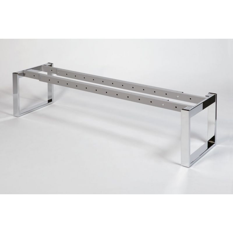 Le piètement de banc Essere se distingue par son design moderne à patins, souligné par l'aspect inox. Fabriqué dans une qualité solide, il est très résistant. Parmi les détails pratiques, on trouve la possibilité de régler la largeur totale au pas de 100 en vissant les raccords transversaux à l'endroit souhaité. Cette caractéristique permet de créer le nombre de places assises nécessaires dans la cuisine. Les inégalités du sol peuvent être compensées par le réglage en hauteur également intégré. Combiné avec une assise assortie, on obtient un style individuel qui valorise avec style l'ambiance existante dans la pièce.