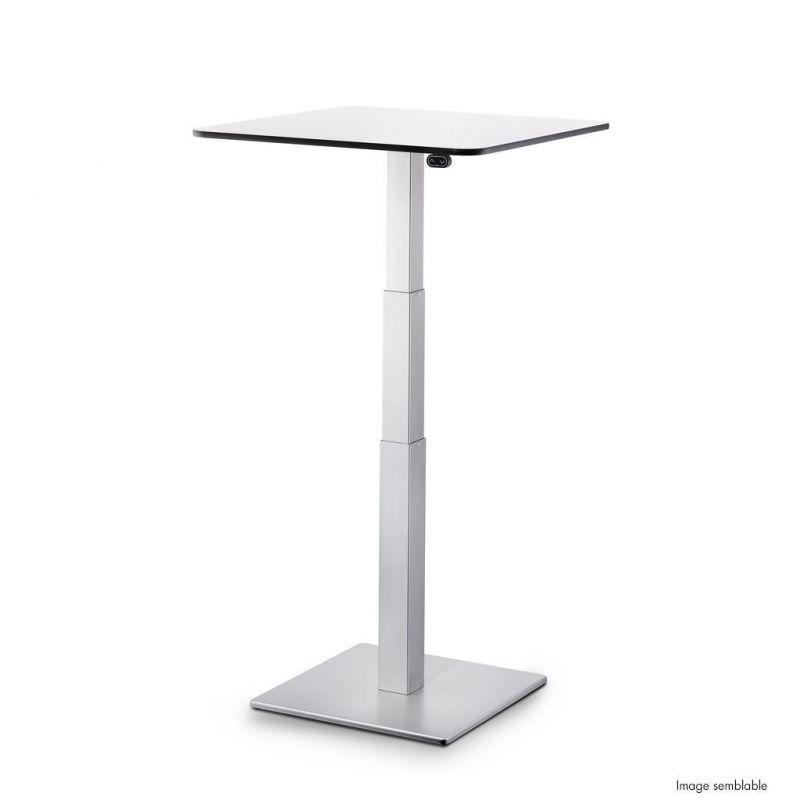 Piètement de table à une colonne réglable en hauteur avec plaque au sol. Élément de commande pour le réglage de la hauteur inclus.