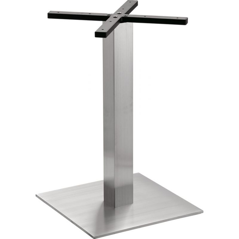 Le piètement de table tendance Tablon® Liva E crée un coin repas moderne dans la cuisine. Il peut être combiné avec un plateau de table rond ou carré. La croix de fixation stable de 450 x 450 mm assure un appui fiable. La base de la table est équipée d'une colonne carrée de 80 x 80 mm qui offre une hauteur de 685 mm. La stabilité est assurée par le plateau de sol carré de 450 x 450 mm. Elle est plate et possède des pieds réglables pratiques pour compenser les inégalités du sol. Le piètement de la table à colonne est prévu pour des plateaux de table de dimensions maximales de 800 x 800 mm. La capacité de charge maximale est d'environ 50 kg. Le matériau utilisé est l'acier inoxydable brossé. Il convainc par sa qualité inoxydable et facile à entretenir. Le montage de la structure et du plateau de table individuel s'effectue par une simple fixation à vis.