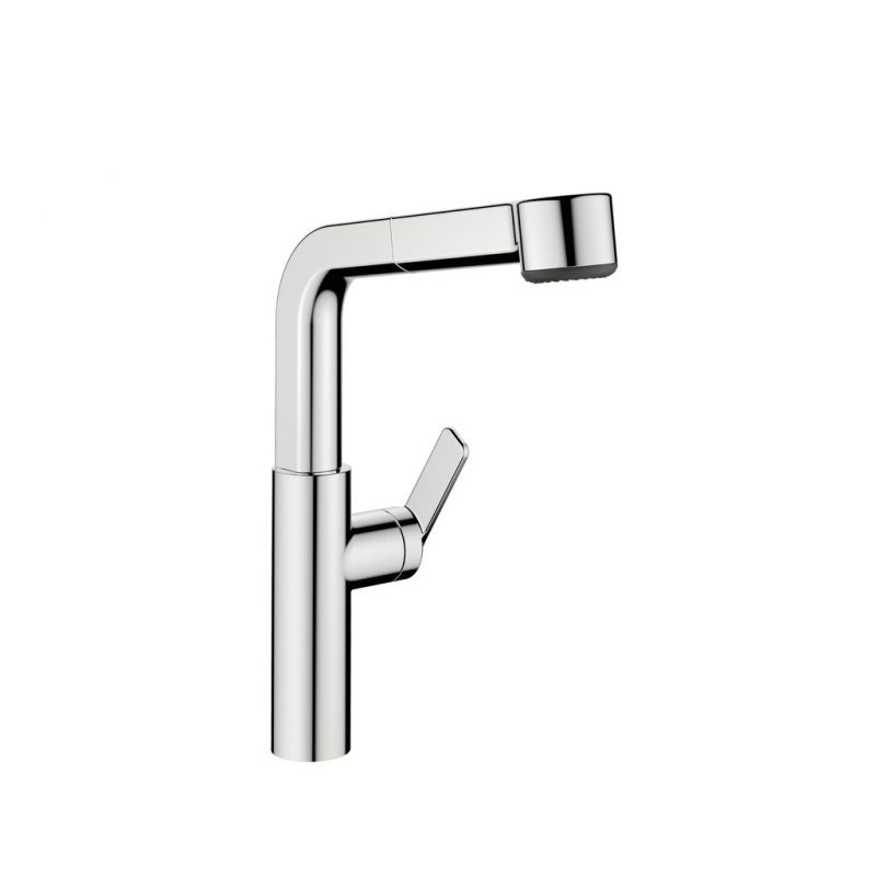 Le robinet de cuisine Domo 7 de KWC impressionne par sa fonctionnalité bien pensée et son design contemporain. Son aspect chromé chic et intemporel en fait un point de mire dans chaque cuisine. Avec son look moderne et élégant, le robinet peut être combiné avec de nombreux styles d'aménagement. Le levier et le capuchon forment une unité, ce qui permet un toucher plus fin et une utilisation plus simple. La douchette pivotante se retire facilement et offre un maximum de flexibilité et de confort pour le rinçage de la vaisselle encombrante et des grandes casseroles. Grâce à EasyLock, la douchette extractible s'enclenche automatiquement et peut toujours être ramenée dans la position prévue. Avec TouchProtect, le robinet d'évier assure une protection contre les brûlures grâce à une alimentation en eau chaude isolée selon le principe des deux coques - le corps du robinet ne peut donc jamais devenir chaud. Le mitigeur est doté d'une surface chromée qui présente l'avantage d'être facile à entretenir et résistante à la corrosion. Il est également équipé d'une cartouche céramique de haute qualité qui permet de réguler le débit et la température de l'eau.
