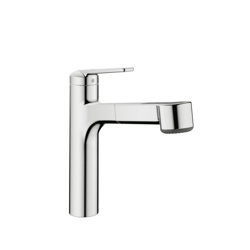 Avec son esthétique raffinée, la robinetterie de cuisine Domo 2 de KWC s'intègre avec style dans tous les espaces de cuisine. Elle mise sur un design intemporel et réduit et complète l'évier dans une optique chromée brillante. Le levier et le capuchon forment une unité et assurent ainsi une manipulation facile et encore plus d'hygiène. Grâce à la douchette intégrée, les grandes casseroles et poêles peuvent être ri...