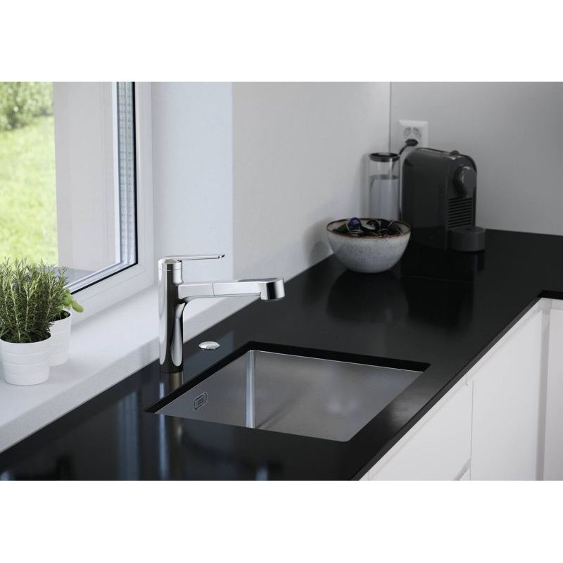 Avec son esthétique raffinée, la robinetterie de cuisine Domo 2 de KWC s'intègre avec style dans tous les espaces de cuisine. Elle mise sur un design intemporel et réduit et complète l'évier dans une optique chromée brillante. Le levier et le capuchon forment une unité et assurent ainsi une manipulation facile et encore plus d'hygiène. Grâce à la douchette intégrée, les grandes casseroles et poêles peuvent être rincées sans effort. Le nettoyage de la cuve est également très confortable. Pour cela, la douchette extractible peut être facilement commutée du jet normal au jet doux ou au jet puissant - que ce soit pour un lavage en douceur des fruits ou des légumes ou pour une élimination efficace des salissures. Grâce à EasyLock, le robinet d'évier permet un retour simple et rapide de la douchette extractible. Il est fabriqué dans un matériau de qualité supérieure et durable. Avec sa surface chromée, le robinet se distingue par ses propriétés robustes et sa résistance à la chaleur. La cartouche céramique intégrée permet de régler la température et le débit de l'eau. Le robinet de cuisine est disponible en version haute pression ou basse pression.