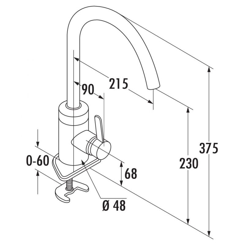 Mitigeur à bec unique. À tête pivotante, manette latérale et cartouche céramique. Robinet haute pression avec régulateur de jet laminaire.