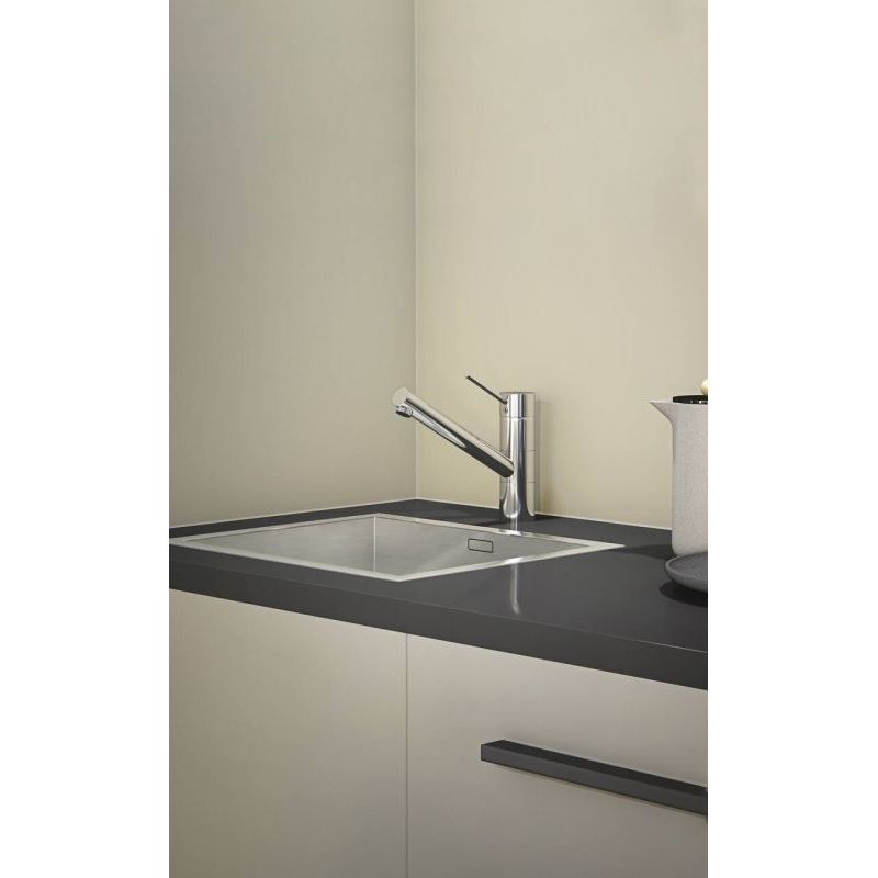 Le robinet de cuisine Scope 2 XL de Kludi en forme de cylindre se caractérise par une esthétique à la fois moderne et minimaliste. Il renonce délibérément aux fioritures superflues, de sorte qu'il sait aussi convaincre par son haut degré de fonctionnalité. Grâce à ses surfaces chromées, il s'harmonise avec les éviers de nombreux designs différents. Le socle surélevé et le mitigeur de précision offrent un maximum d...