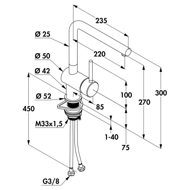 Steel L1, Mitigeur à bec unique, acier inox, haute pression