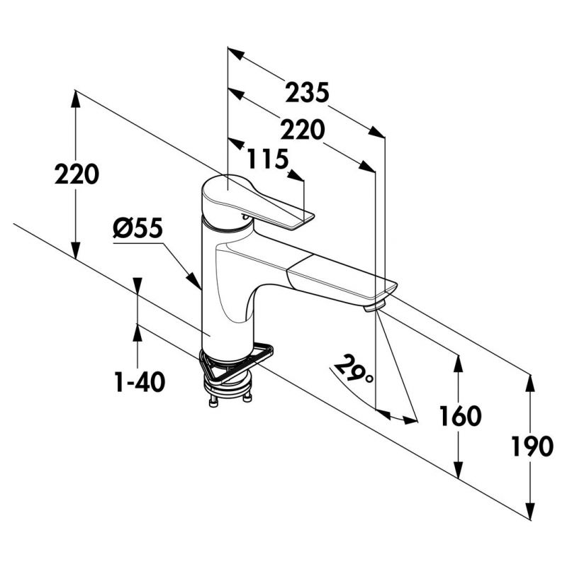 Kludi Mix 2, Mitigeur à bec unique noir mat haute pression