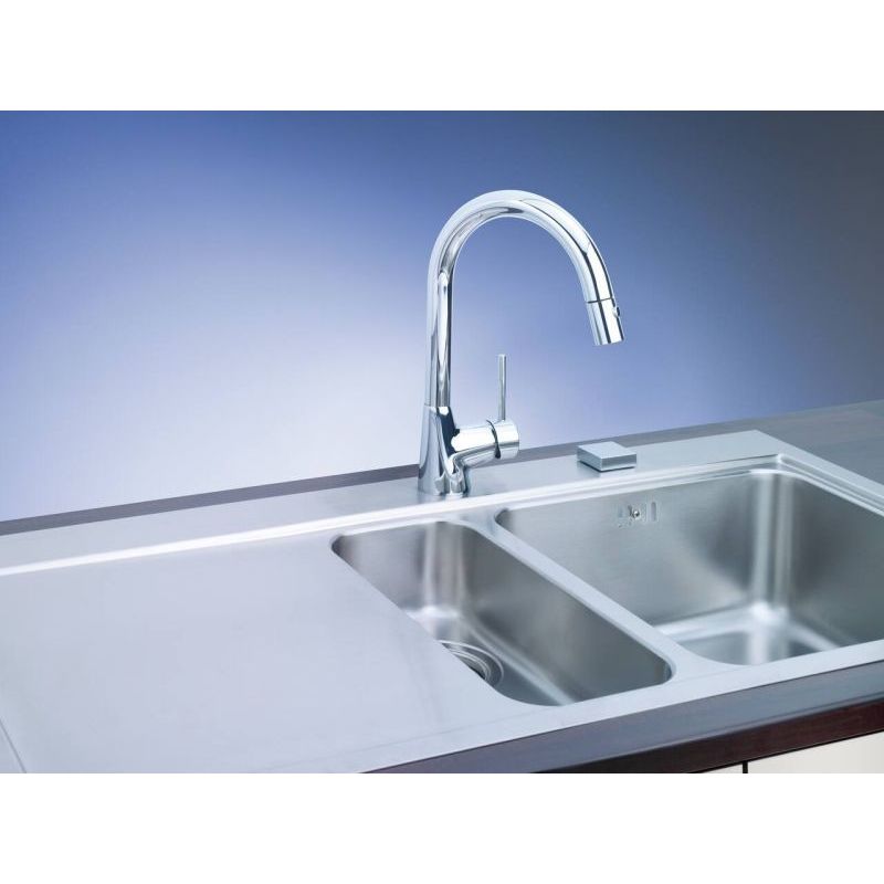 Mitigeur à bec unique. À tête pivotante/extractible et cartouche céramique.
