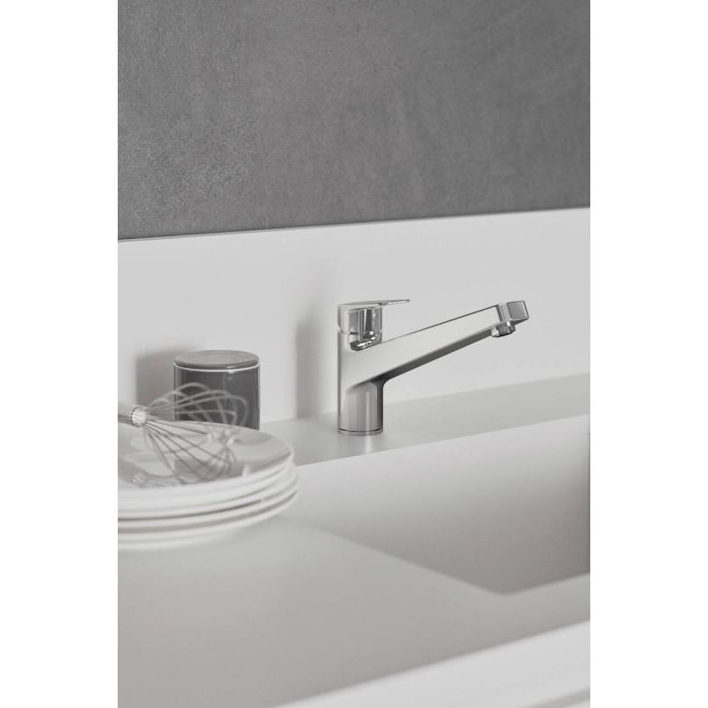 Avec son élégance sobre, le robinet de cuisine Ceraplan Neo 1 de la marque Ideal Standard s'intègre harmonieusement dans chaque évier. Son design clair et sobre, avec son bec en fonte placé en hauteur, est aussi convaincant à l'œil qu'au toucher. La zone de pivotement de 360° et le levier de mélange placé au centre assurent une utilisation confortable. Dans sa version haute pression, le robinet d'évier marque des points grâce à sa fonction ECO, qui permet d'économiser jusqu'à 50 % d'eau et de réduire la consommation d'énergie. Il est également équipé d'un régulateur de jet anticalcaire, facile à nettoyer grâce à sa surface en élastomère souple. Le mitigeur est fabriqué à partir de matériaux de haute qualité. Il séduit par sa finition chromée brillante et ses surfaces résistantes et faciles à entretenir. Afin d'éviter les brûlures dues à l'eau chaude, le corps du robinet est équipé d'une cartouche céramique avec réglage de la température maximale. En plus de la robinetterie haute pression, le modèle est disponible en version basse pression. Les deux variantes se distinguent par leur fixation Easy-Fix pour un montage simple.