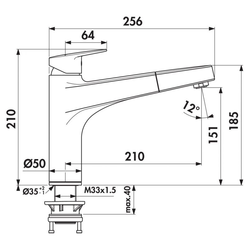 Mitigeur à bec unique. À tête pivotante/extractible, cartouche céramique et fonction ECO.
