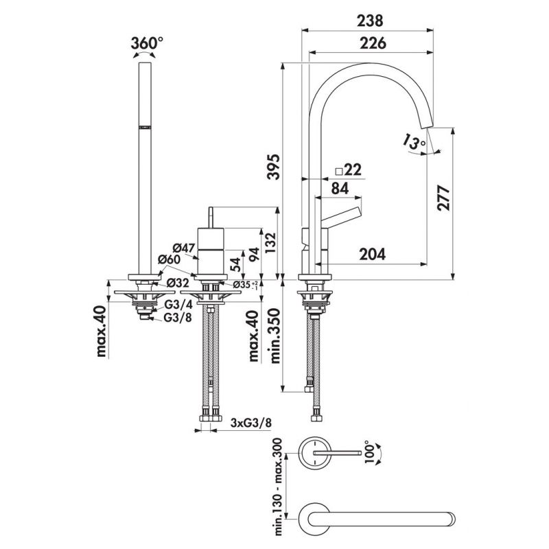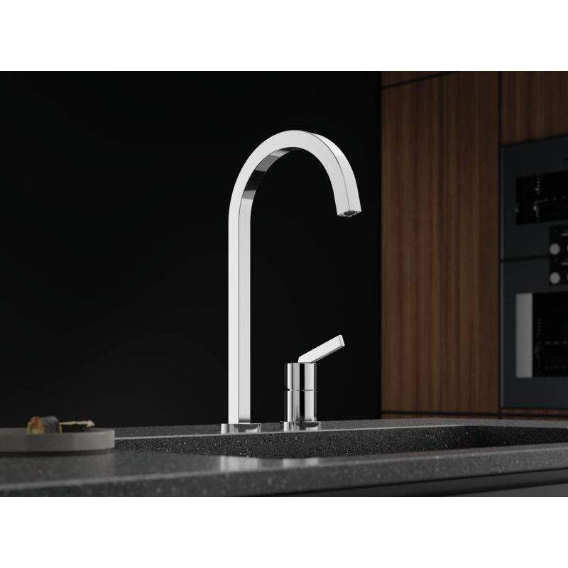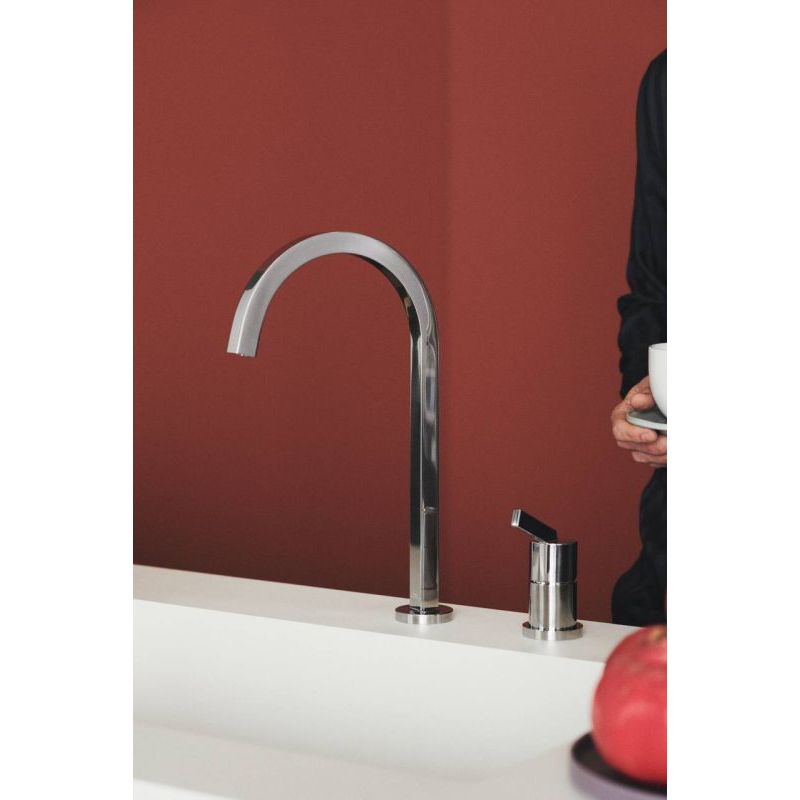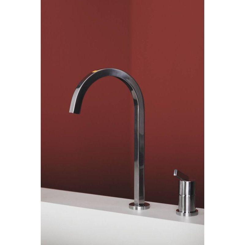 Mitigeur à bec unique - deux trous. À tête pivotante, manette et cartouche céramique à positionner séparément.