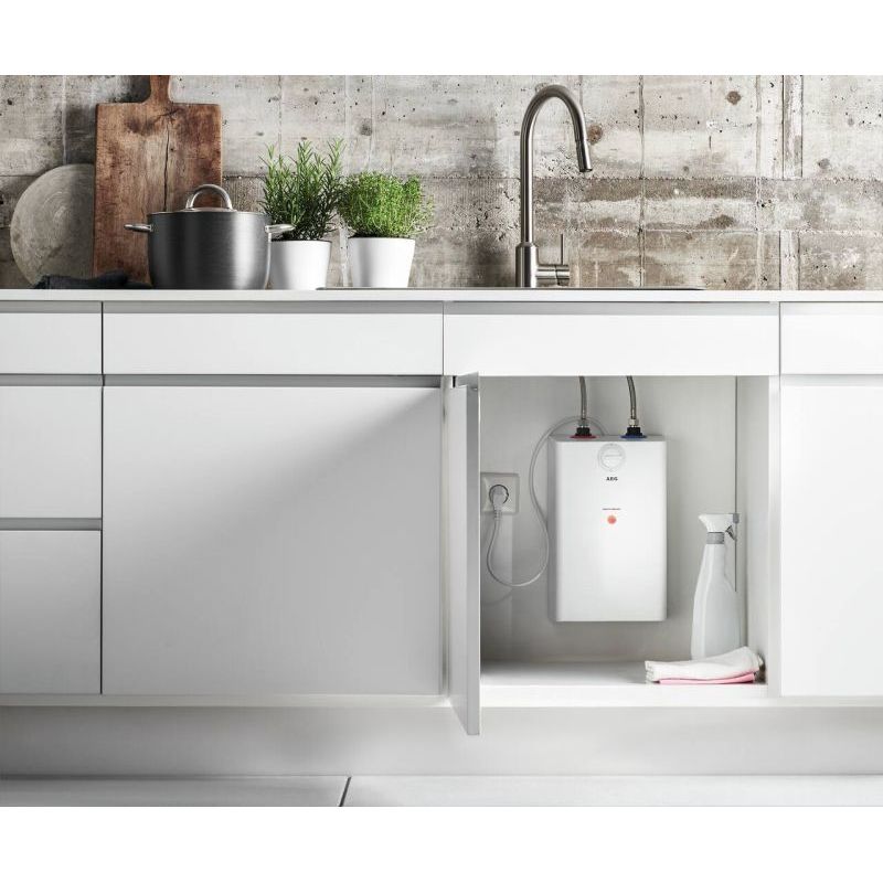 Le chauffe eau Small U5 est peu encombrant et se fait particulièrement petit dans le meuble bas de votre évier. Il se distingue par sa montée en température rapide qui vous permettra ainsi d'économiser de l'eau et de réduire votre consommation d'électricité. Il est adapté aux robinets basse pression en combinaison avec le raccordement d'eau froide dans la cuisine. En un tour de main, le réservoir sans pression fournit 7,5 l d'eau mitigée à une température de 40 °C. L'appareil compact sous évier se distingue par sa faible profondeur d'encastrement, ce qui permet d'utiliser l'espace du placard à d'autres fins. Le petit réservoir dispose d'un réglage de température en continu de 30 à 85 °C grâce au bouton rotatif situé sur la façade. Le réservoir est fabriqué en plastique robuste et résistant. De plus, une isolation thermique compacte maintient l'eau chaude pendant longtemps. Le limiteur de température de sécurité intégré peut être réinitialisé en retirant la fiche d'alimentation, de sorte que le réservoir d'eau est immédiatement prêt à l'emploi. La barre de fixation murale correspondante et les raccords prêts à brancher garantissent un montage simple.