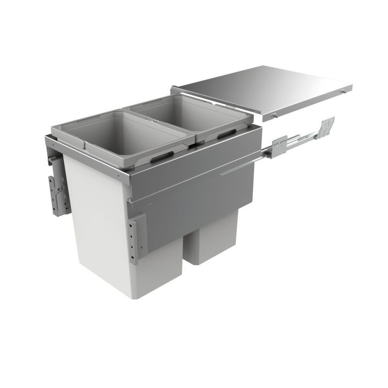 Cox Clan® 490/450-2, Système de poubelles suspendues 2 bacs 59L pour caisson de 450mm, gris clair, H 490 mm