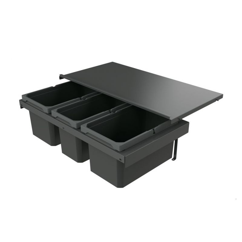 Cox Stand-UP® 250 S/800-3, Système de poubelles pour tiroir 3 bacs 36 L pour caisson de 800mm, anthracite, H 250 mm