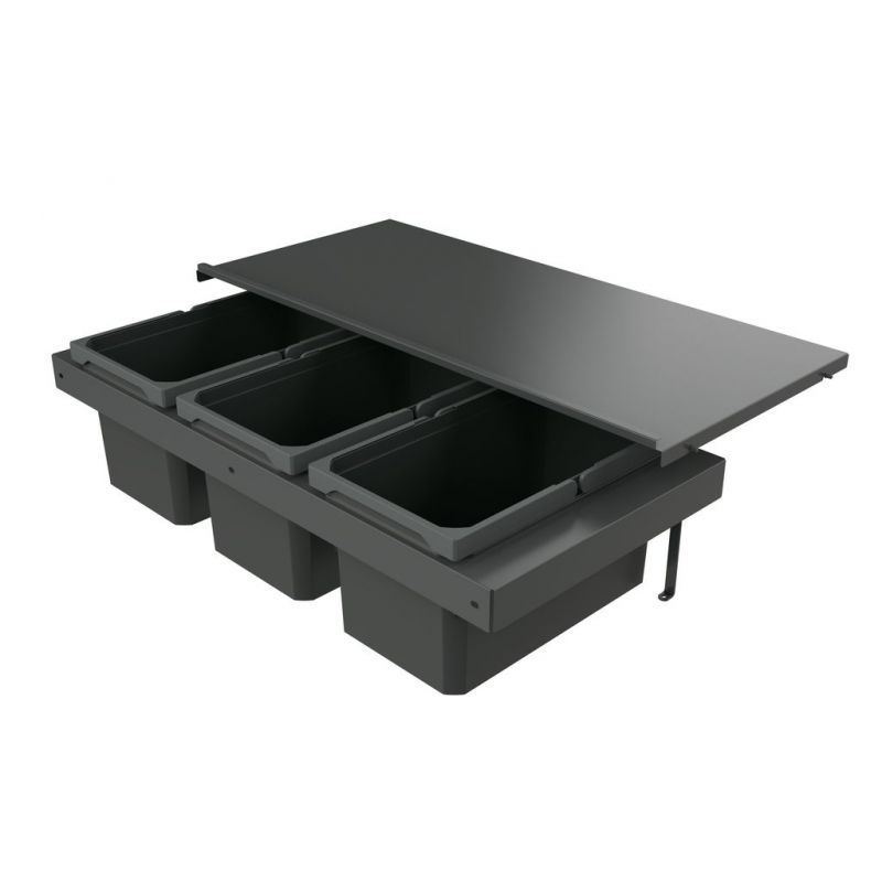 Cox Stand-UP® 250 S/900-3, Système de poubelles pour tiroir 3 bacs 39 L pour caisson de 900mm, anthracite, H 250 mm