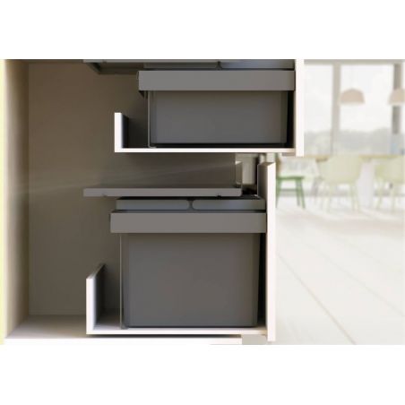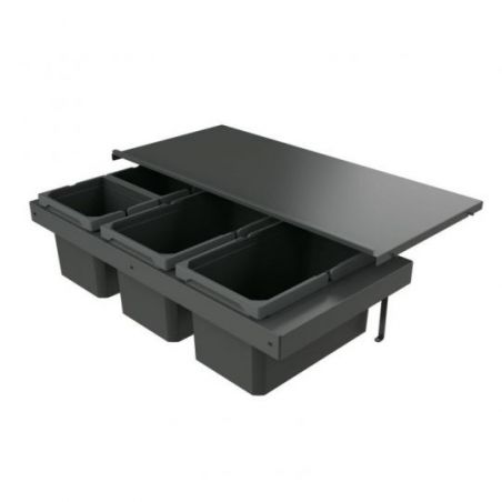 Le système de tri des déchets au design moderne Cox Stand-UP 280 S/900-3 met à disposition un volume de déchets généreux de 48 litres. Il a été spécialement conçu pour les armoires coulissantes d'une largeur de corps de 900mm. Les trois poubelles correspondantes ont une capacité de 16 litres chacune. Elles sont encastrées dans un cadre de montage robuste et peuvent être retirées individuellement. Pour faciliter leur manipulation, elles sont en outre dotées de poignées rabattables pratiques. Les odeurs désagréables sont supprimées par le couvercle général qui se trouve au-dessus et qui est solidement intégré dans le corps de la poubelle. Un couvercle de fermeture séparé pour les déchets biologiques ainsi que la boîte à ustensiles Cox Work pour les sacs poubelle et autres petites pièces sont disponibles en tant qu'accessoires optionnels. Le système de tri des déchets se monte sur le fond de l'armoire.