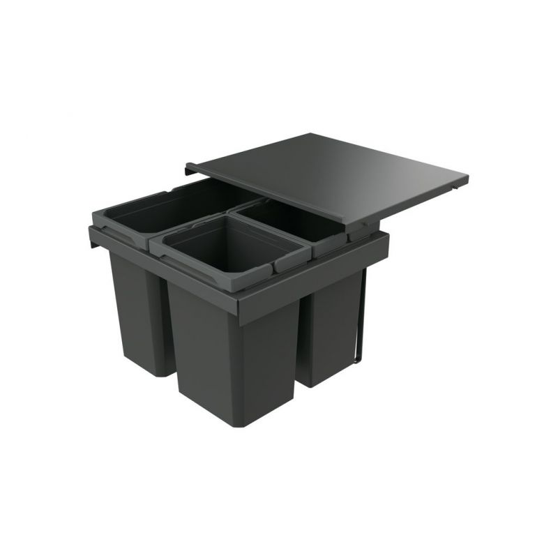 Cox Stand-UP® 350 S/500-3, Système de poubelles pour tiroir 3 bacs 36 L pour caisson de 500mm, anthracite, H 350 mm