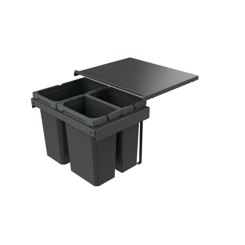 Cox Stand-UP® 350 K/500-3, Système de poubelles pour tiroir 3 bacs 27 L pour caisson de 500mm, anthracite, H 350 mm