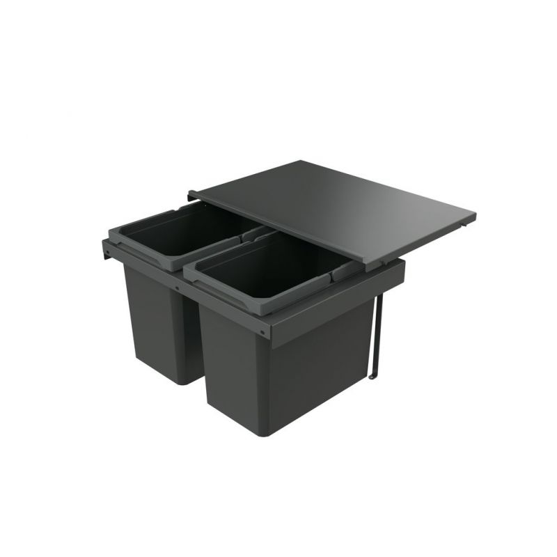 Cox Stand-UP® 350 S/600-2, Système de poubelles pour tiroir 2 bacs 44 L pour caisson de 600mm, anthracite, H 350 mm