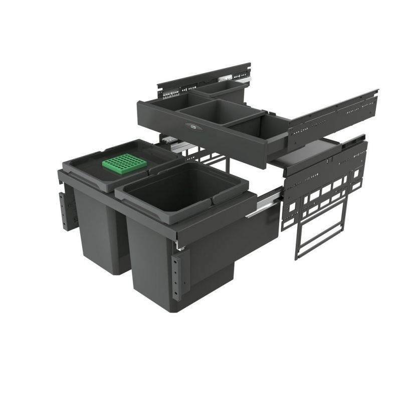 Le vrai plus ? Le système Base Board intégré. Il s'agit d'un système de couvercle intégré, les deux bacs sont ainsi fermées simultanément. Grâce à ce système , vous avez à votre disposition un tiroir pratique équipé de deux boîtes de rangement de tailles différentes pour organiser le rangement des éponges ou sacs poubelles. En option, cet organiseur peut être complété par d'autres boîtes. Ajoutez à cela un couvercle bio hermétique pour limiter les odeurs, et vous obtenez une solution à la fois propre, pratique et respectueuse de votre environnement.