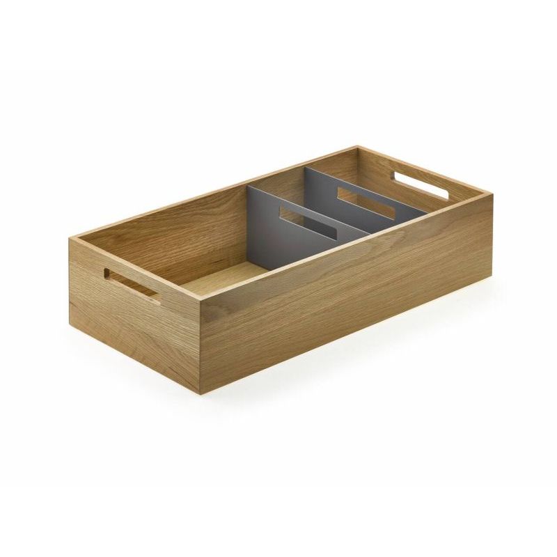 Le bloc-tiroir Modify Box 1 avec poignées encastrées convient au rangement individuel de différents ustensiles de cuisine. Il peut être placé de manière flexible dans le tiroir et utilise l'espace disponible de manière optimale. Son compartiment intérieur offre un espace de rangement pratique pour les fouets, les cuillères en bois ou les râpes. Pour une manipulation agréable, l'organisateur de tiroir est équipé de poignées encastrées ergonomiques. Fabriqué en bois, il se distingue par sa qualité durable et stable. Différentes couleurs sont disponibles pour s'adapter au concept d'aménagement : Frêne noir ou Chêne clair.