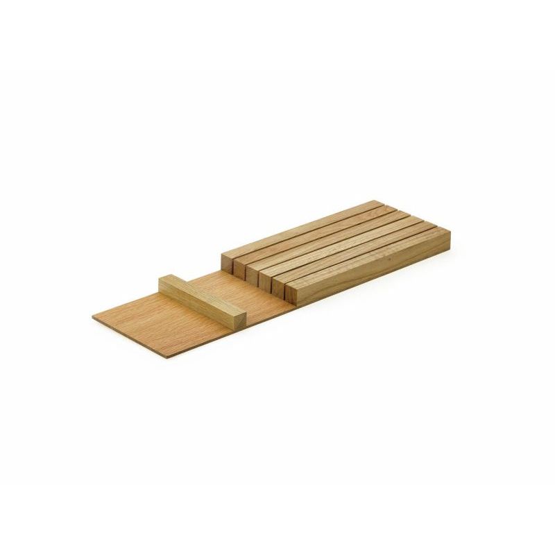 En savoir plus ...Le porte-couteaux Modify est une solution pratique pour ranger les couteaux de cuisine de manière sûre et ordonnée dans le tiroir. Il peut accueillir jusqu'à cinq couteaux. Fabriqué en bois, le porte-couteaux se distingue par sa qualité durable et robuste. En même temps, il convainc par son aspect naturel et intemporel, ce qui lui permet de s'intégrer dans tous les tiroirs de cuisine. Différentes variantes de couleurs sont disponibles selon les goûts personnels : Frêne noir ou Chêne clair.