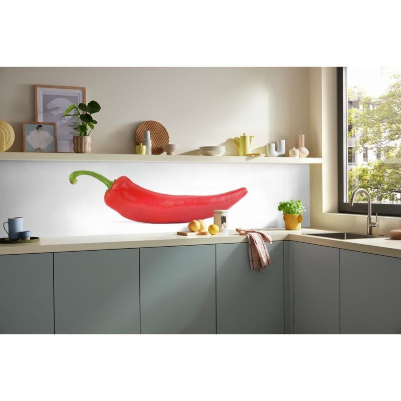 Crédence murale PICit® 90 - Piment rouge sur fond blanc, aluminium, 3.5 mm, brillant