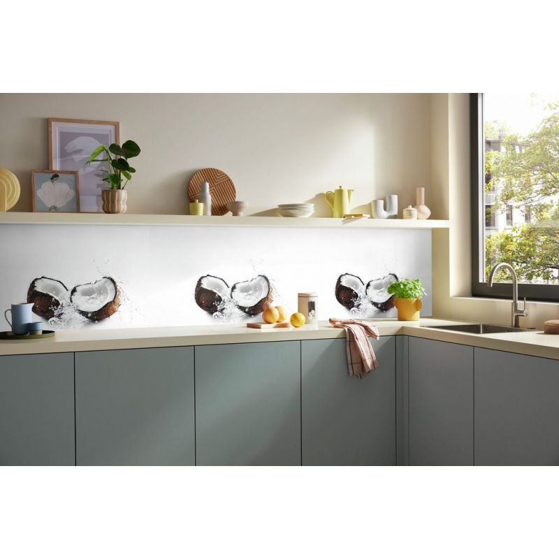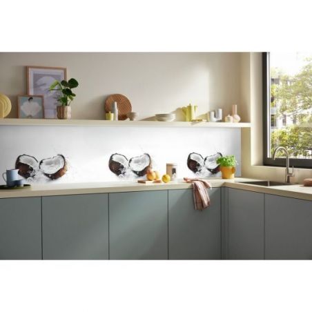 Crédence murale PICit® 105 - Noix de coco brisées sur fond blanc, aluminium, 3.5 mm, brillant