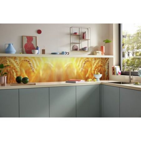 Crédence murale PICit® 110 - Champs de blé dorés sous les rayons du soleil, aluminium, 16 mm, mat