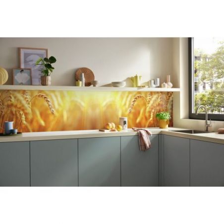 Crédence murale PICit® 110 - Champs de blé dorés sous les rayons du soleil, aluminium, 16 mm, brillant