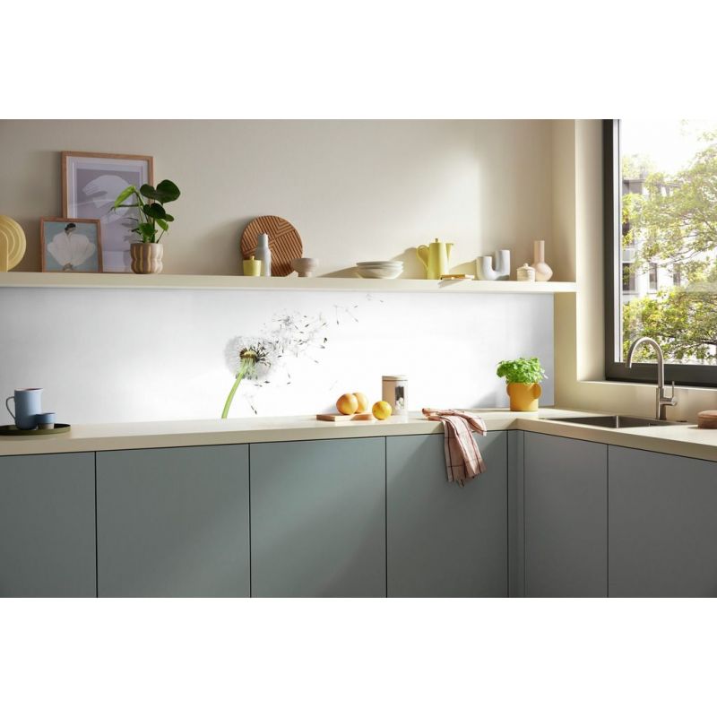 Crédence murale PICit® 122 - Souffle sur une fleur de pisenlit sur fond blanc aluminium, 16 mm, brillant