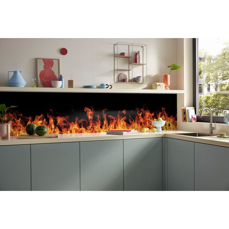 Crédence murale PICit® 124 - Ligne de feu sur fond noir, aluminium, 16 mm, mat