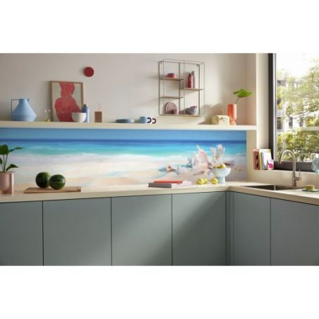 Crédence murale PICit® 118 - Coquillages et étoile de mer sur sable blanc, aluminium, 16 mm, mat