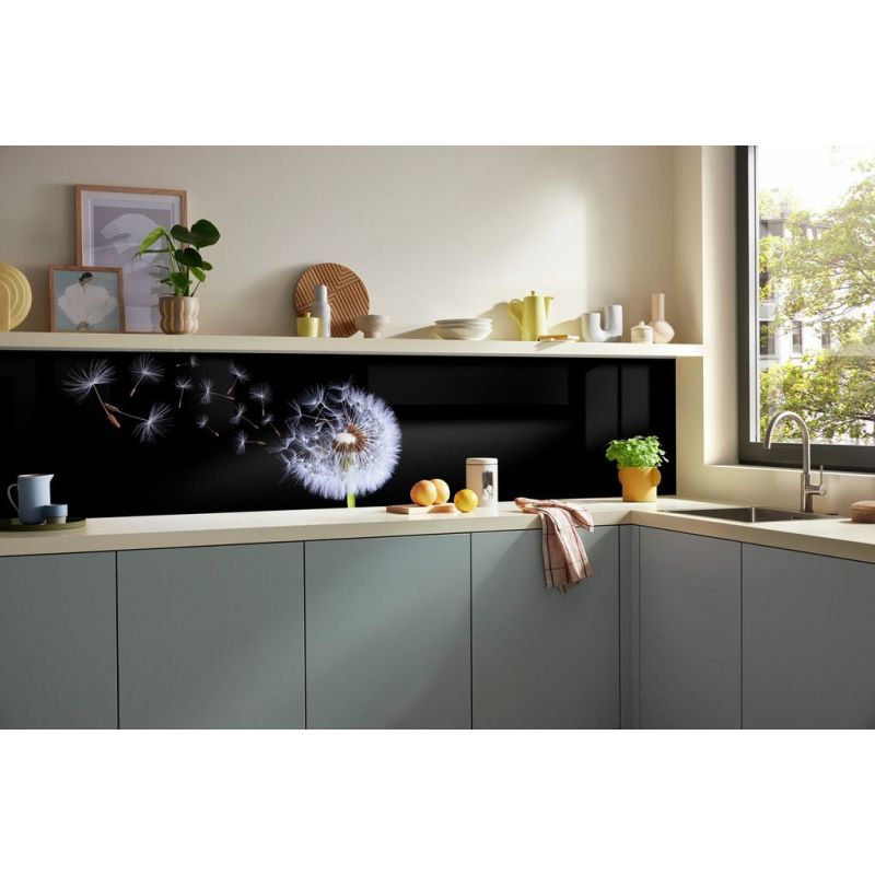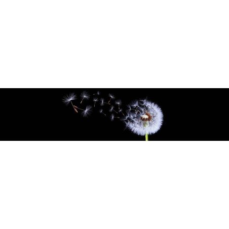 Crédence murale PICit® 123 - Souffle sur une fleur de pisenlit sur fond noir, aluminium, 16 mm, brillant