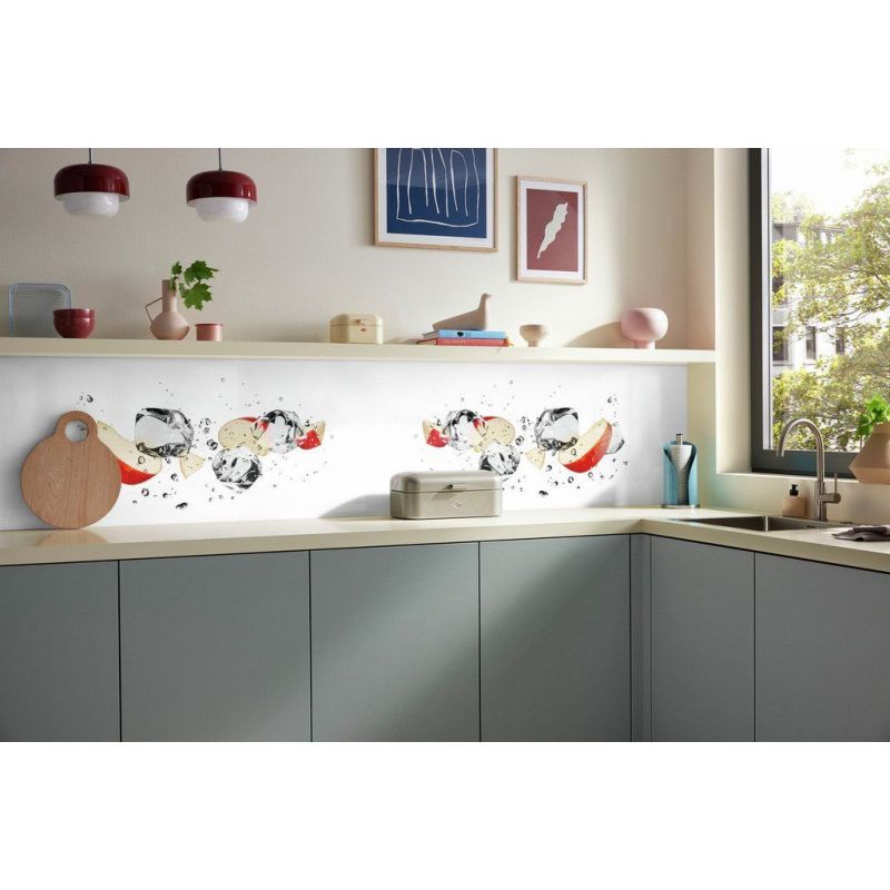 Crédence murale PICit® 84 - Quartiers de pommes rouges avec des glaçons, acrylique, 3.5 mm, brillant