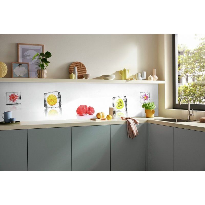 Crédence murale PICit® 104 - Glaçons, fleurs et fruits givrés, acrylique, 3.5 mm, brillant