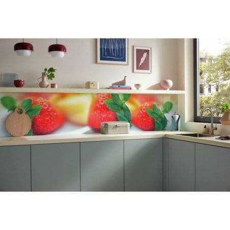 Crédence murale PICit® 67 - Fraises et pêches, acrylique, 16 mm, brillant