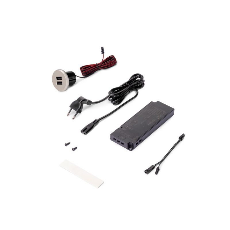 Son installation requiert un perçage de Ø25mm au meuble aussi comme un convertisseur de tension constante (compris dans le kit).