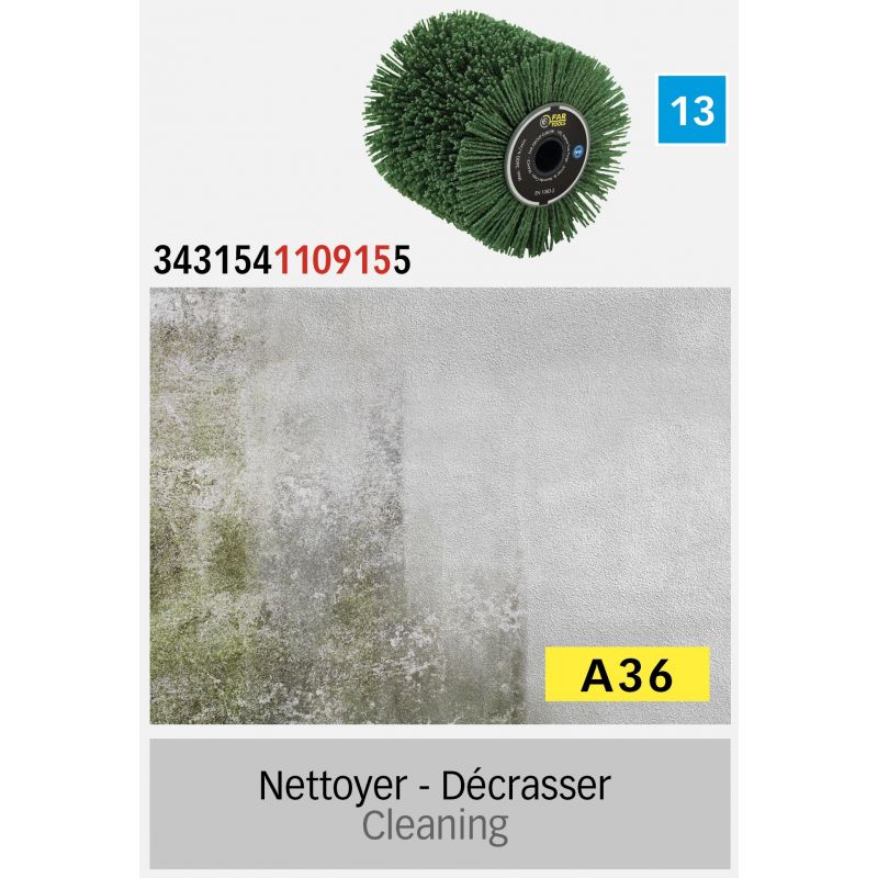 Brosse nylon abrasifs grain36 Ø120mm - L 100mm pour décrasser/dégriser/nettoyer le bois, le métal ou la pierre (surfaces complexes ou planes). Compatible avec machines REX120C, REX200 et REX-H-200.