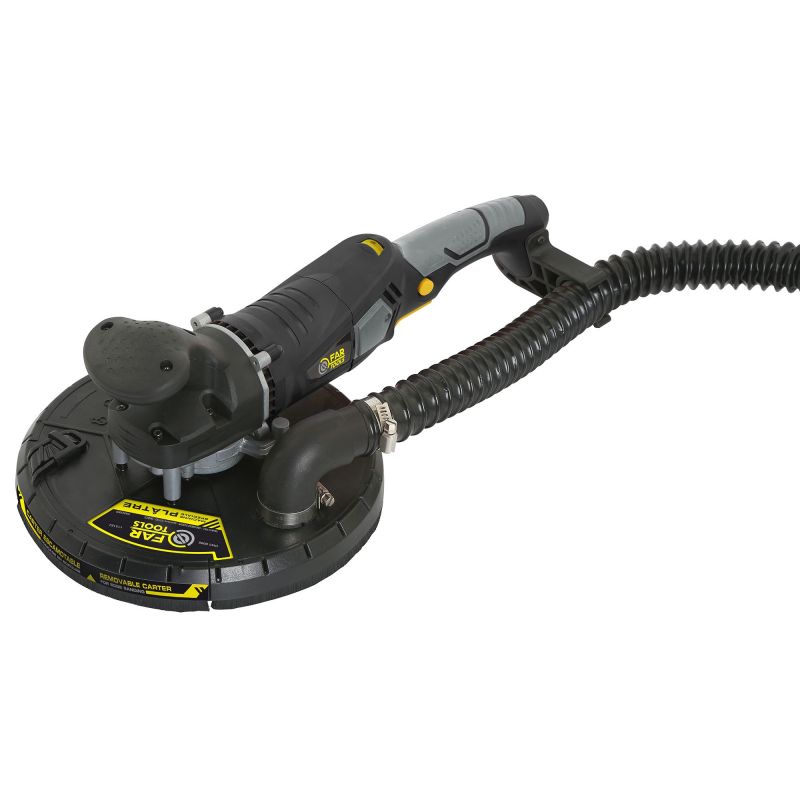 Ponceuse murale pour plaque de plâtre 1010W XL - Diamètre plateau de ponçage 225mm - Fixation autoagrippante - Vitesse variable de 1000 à 2000 tr/min - Poignée principale et frontale ergonomiques et confortables soft-grip - Bordure de carter excamotable pour travailler les angles en toute facilité - Flexible de 1,5m de connexion de connexion à un aspirateur à décolmatage - Livré avec un flexible de 1,5m et 6 disques abrasifs - Pour poncer le plâtre et les bandes de joint en limitant la poussière à son minimum. Indispensable pour un ponçage du plâtre (murs, sous-pente, plafonds) sans trace. Très maniable et léger pour un travail en toute sécurité. Idéal pour les grandes surfaces.