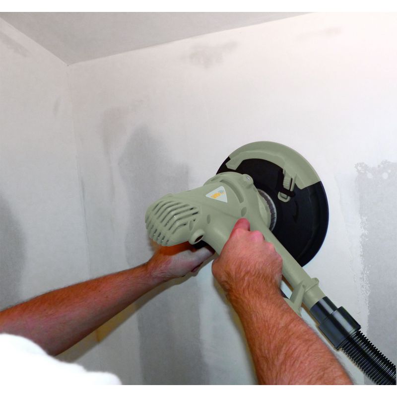 Ponceuse murale pour plaque de plâtre 710W - Diamètre plateau de ponçage 180mm - Fixation autoagrippante - Variateur de vitesse 1200-2500tr/min - Poignée principale ergonomique et confortable soft-grip - Poignée auxiliaire droitier/chaucher - Bordure de carter excamotable pour travailler les angles en toute facilité - Flexible de connexion à un aspirateur à décolmatage - Livré avec 2 adaptateurs d'aspirateur multi-diamètres, 1 flexible de 3m et 2 charbons - Pour poncer le plâtre et les bandes de joint en limitant la poussière à son minimum. Indispensable pour un ponçage du plâtre (murs, sous-pente, plafonds) sans trace. Très maniable et léger pour un travail en toute sécurité. Papiers abrasifs de différents grains (A40, A80, A120, A180, A240) vendus séparément