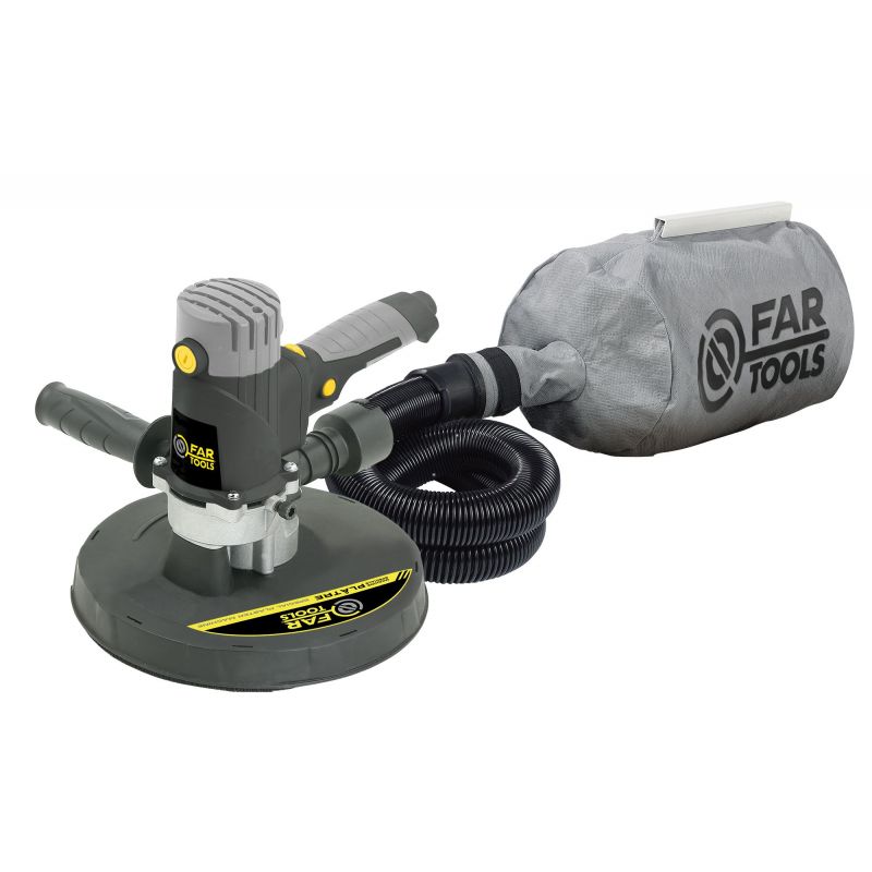 Ponceuse murale pour plaque de plâtre 1200W - Diamètre plateau de ponçage 225mm - Auto-aspirante pour un travail en totale autonomie (la connexion à un aspirateur à décolmatage reste possible) - Sac textile haute étanchéité de récupération des poussières à ouverture facile - Vitesse variable de 1400 à 3100tr/min - Poignée principale ergonomique et confortable soft-grip - Poignée auxiliaire droitier/chaucher confortable soft-grip - Flexible de 2m de connexion récupérateur de poussières ou de connexion à un aspirateur à décolmatage - Livré avec un sac collecteur de poussières, flexible de 2m et 6 disques abrasifs - Pour poncer le plâtre et les bandes de joint en limitant la poussière à son minimum. Indispensable pour un ponçage du plâtre (murs, sous-pente, plafonds) sans trace. Très maniable et léger pour un travail en toute sécurité. Idéal pour les grandes surfaces. Papiers abrasifs de différents grains (A40, A80, A120, A180, A240) vendus séparément