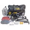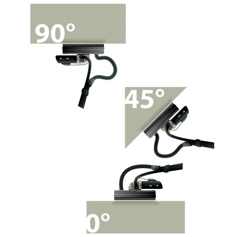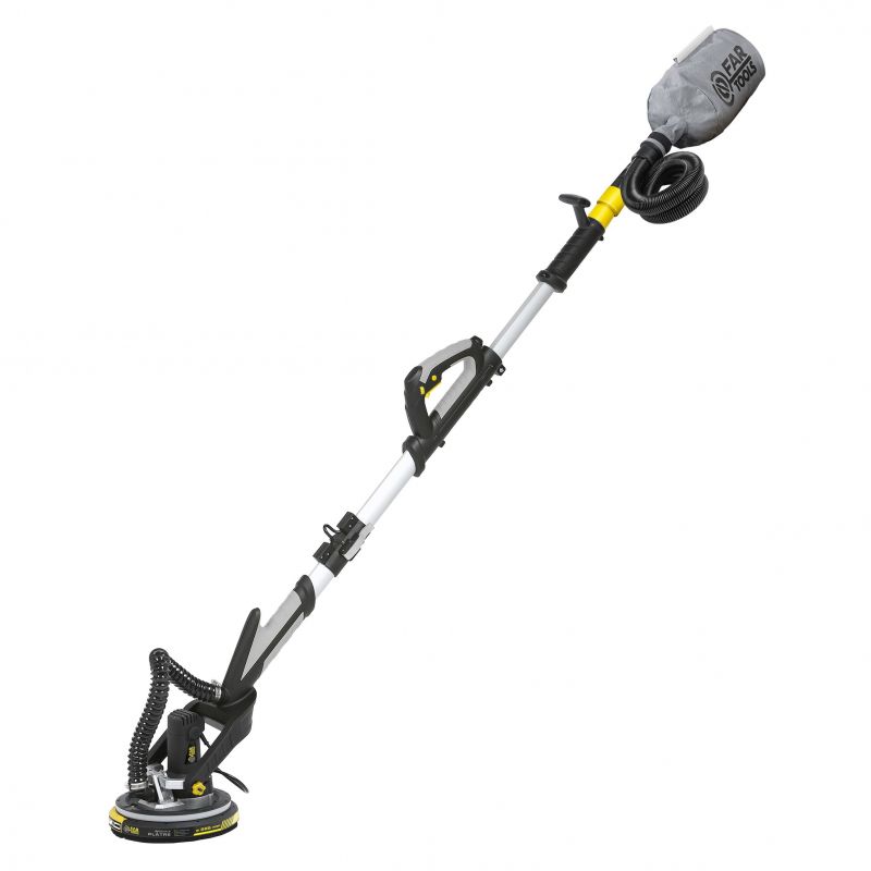 Ponceuse téléscopique plâtre 750W suréquipée - Diamètre plateau de ponçage Ø225mm - Auto-aspirante pour un travail en totale autonomie - 85% des poussières aspirées - la connexion à un aspirateur à décolmatage reste possible - Sac textile haute étanchéité de récupération des poussières à ouverture facile - Tête inclinable, orientable et blocable à 90° pour le travail des plafonds - Tube télescopique aluminium léger et résistant ajustable de 1500 à 1800mm et pliable pour un transport facilité et un rangement optimisé - Plateau éclairant 360° LED de puissance pour une détection rapide et facile des défauts à poncer - Plateau avec trappe escamotable orientable à360° pour travailler les angles à gauche, à droite ou à l'avant - Vitesse variable de 900 à 1800tr/min - 3 poignées principales ergonomiques et confortables soft-grip (3ème poignée pour ponçage haut-plafond) - Flexible de 4m de connexion récupérateur de poussières ou de connexion à un aspirateur à décolmatage - Sac de transport/rangement textile renforcé - Livré avec 6 disques papiers abrasifs, 3 disques mailles abrasives réutilisables - Pour poncer le plâtre et les bandes de joint en limitant la poussière à son minimum. Indispensable pour un ponçage du plâtre (murs, sous-pente, plafonds) sans trace. Très maniable pour un travail en toute sécurité. Idéal pour les grandes surfaces. Papiers abrasifs de différents grains (A40, A80, A120, A180, A240) vendus séparément
